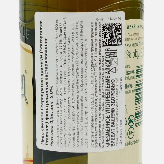 Пиво Старопрамен светлое паст фильтр 5% ст/б 0,5л