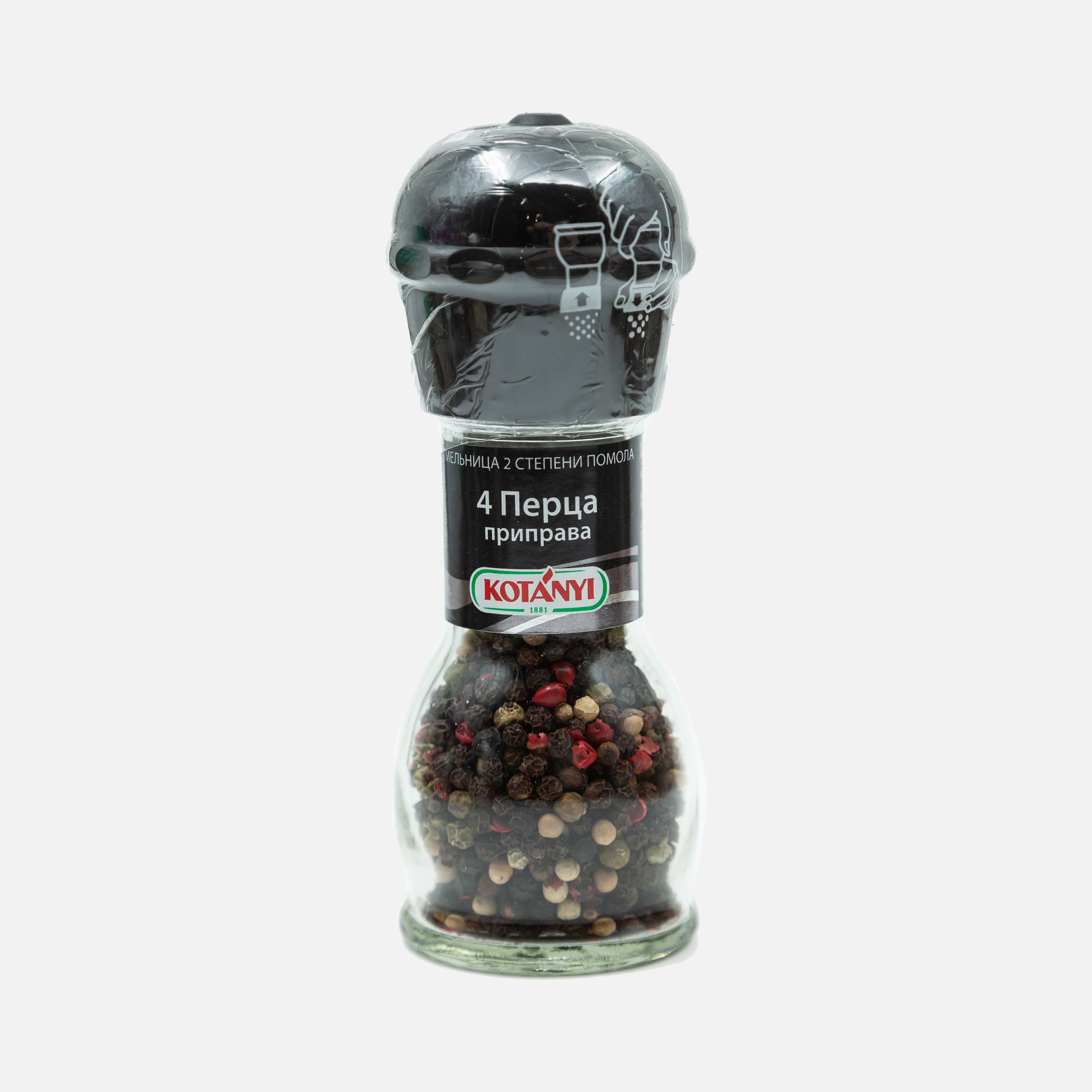 Смесь приправ "Котани 4 перца". В состав смеси входят черный, белый, жгучий и душистый перцы.
