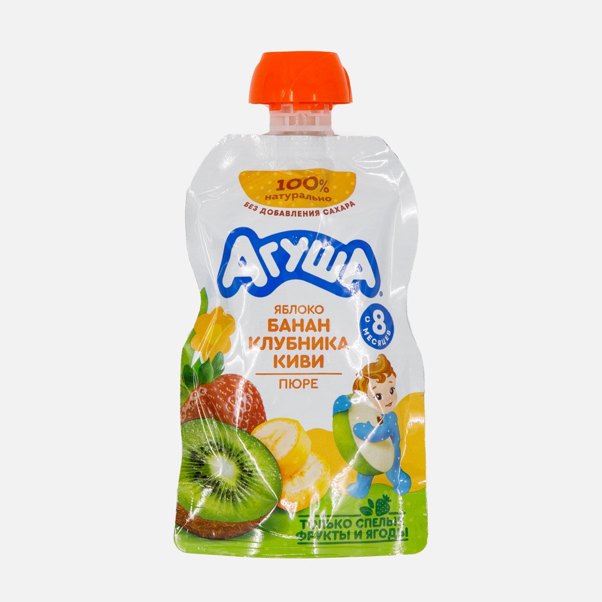 Пюре Агуша Яблоко/банан/клубника/ киви с 6мес дой/пак/крыш 90г