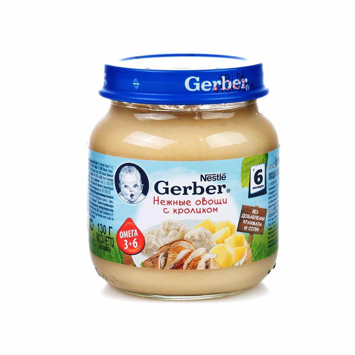 Пюре Гербер Нежные овощи с кроликом с 6мес ст/б 130г