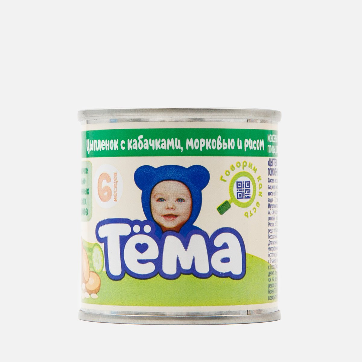 Пюре Тема Цыпленок с кабачками морковью/рисом с 6мес ж/б 90г