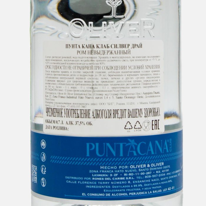 Ром Пунта Кана Клаб Силвер Драй невыд 37.5% ст/б 0,7л
