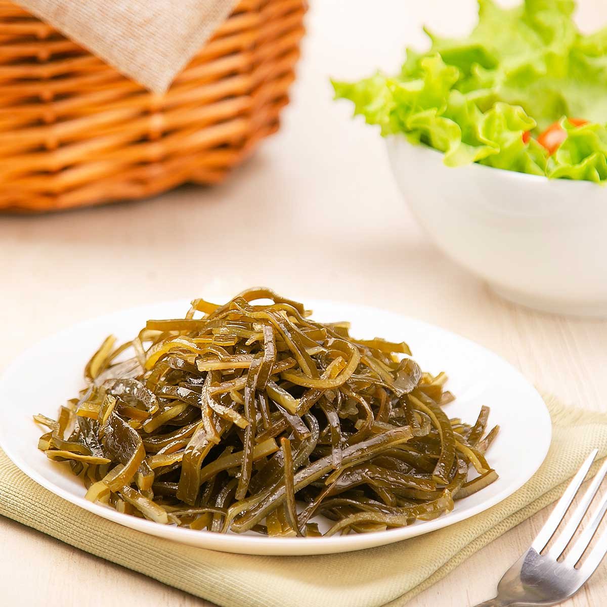 Морская капуста - известный источник йода, омега-3 и витаминов. В этом салате она приправлена кукурузным маслом, соевым соусом и соком лимона, чтобы подчеркнуть ее тонкий вкус.