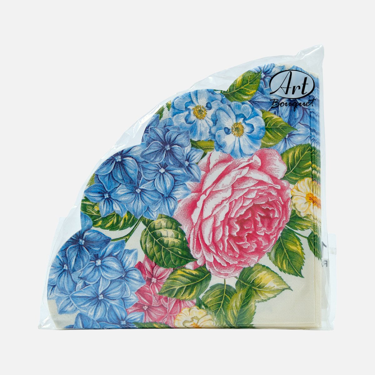 Салфетки Арт букет Рондо Гортензии и розы бум 17*17*0,4см 3сл 12 лист