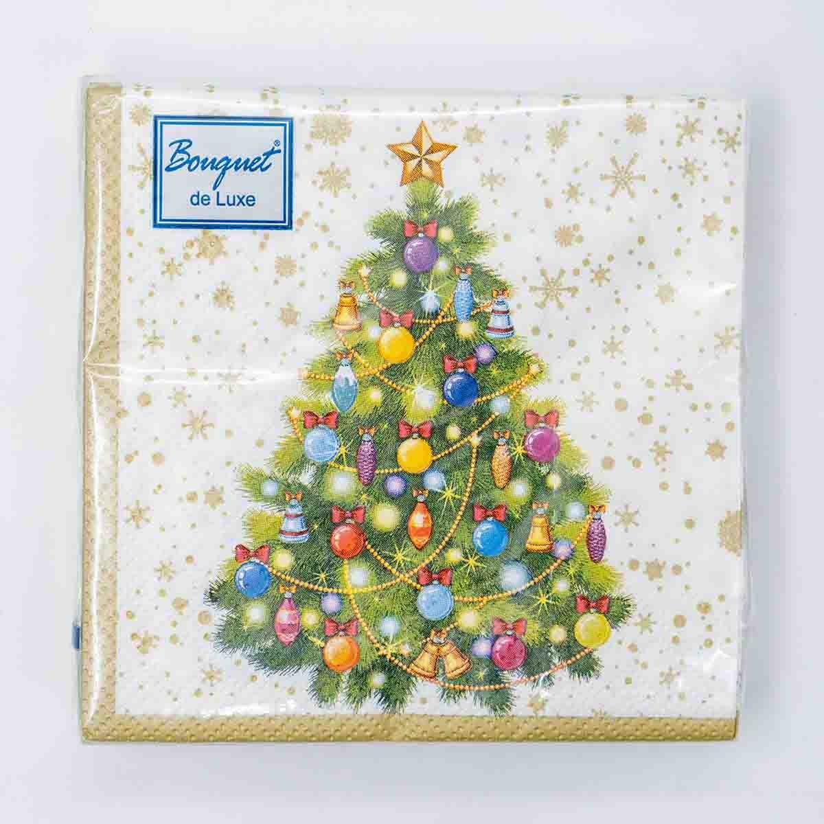 Салфетки Букет де Люкс Новогодняя ель на белом бум 24*24 3сл 25 лист