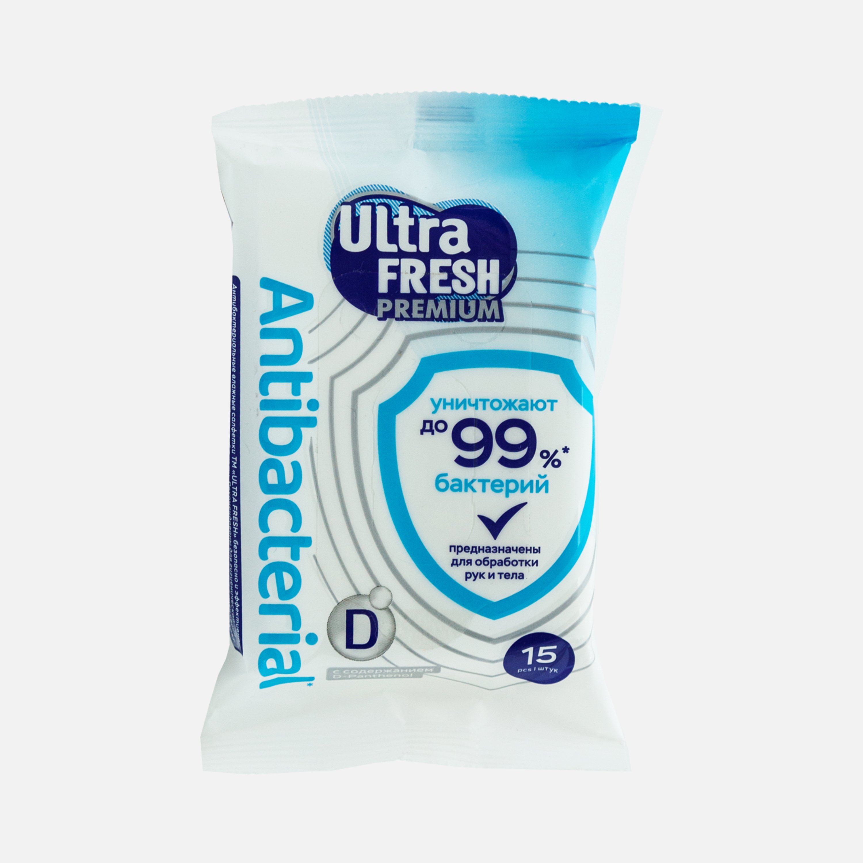 Салфетки Ультра Фреш Антибактериал влаж с витаминами/экстрактами 15шт
