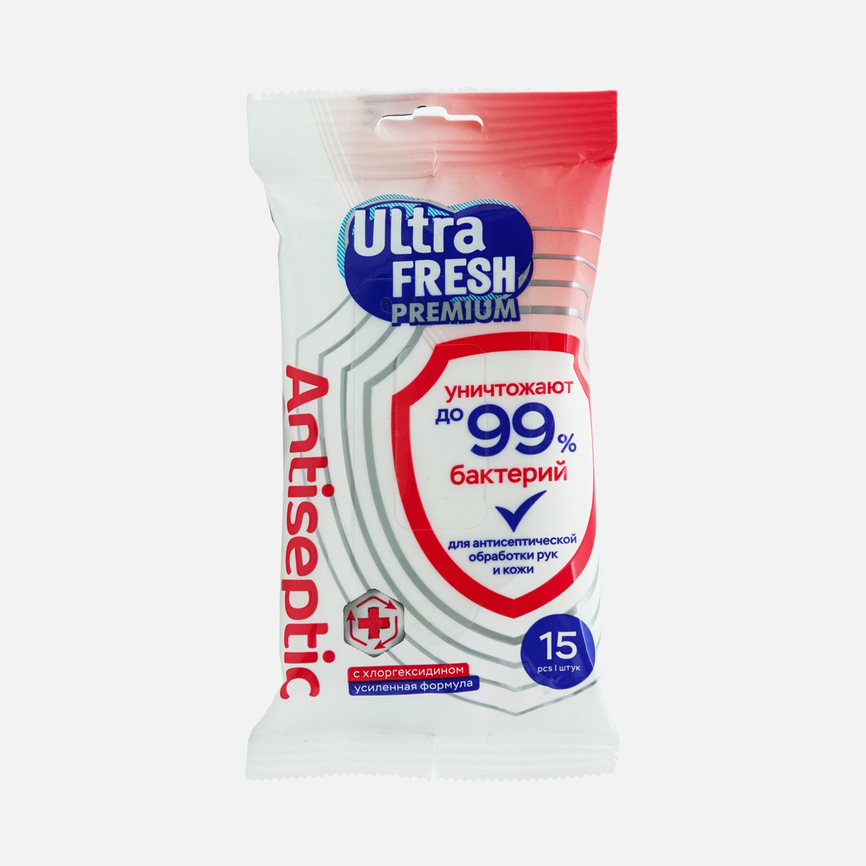 Салфетки Ультра Фреш влажные Антибактериальные с хлоргексид 15шт