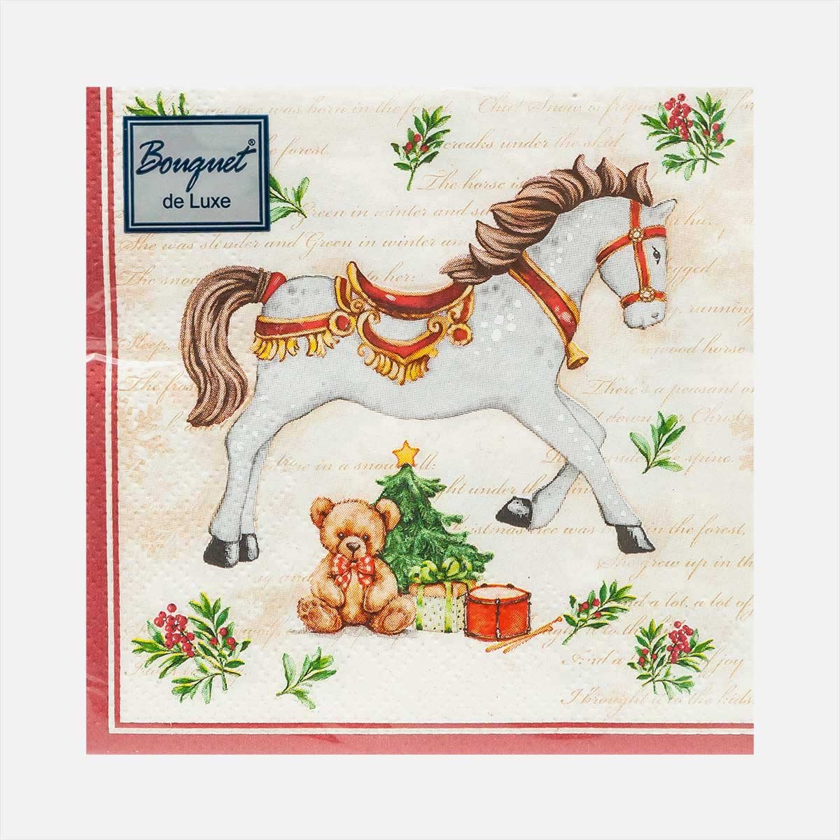 СалфеткиБукетОригинал деЛюксНовогод лошадка кремов фон бум24*24см3сл25л