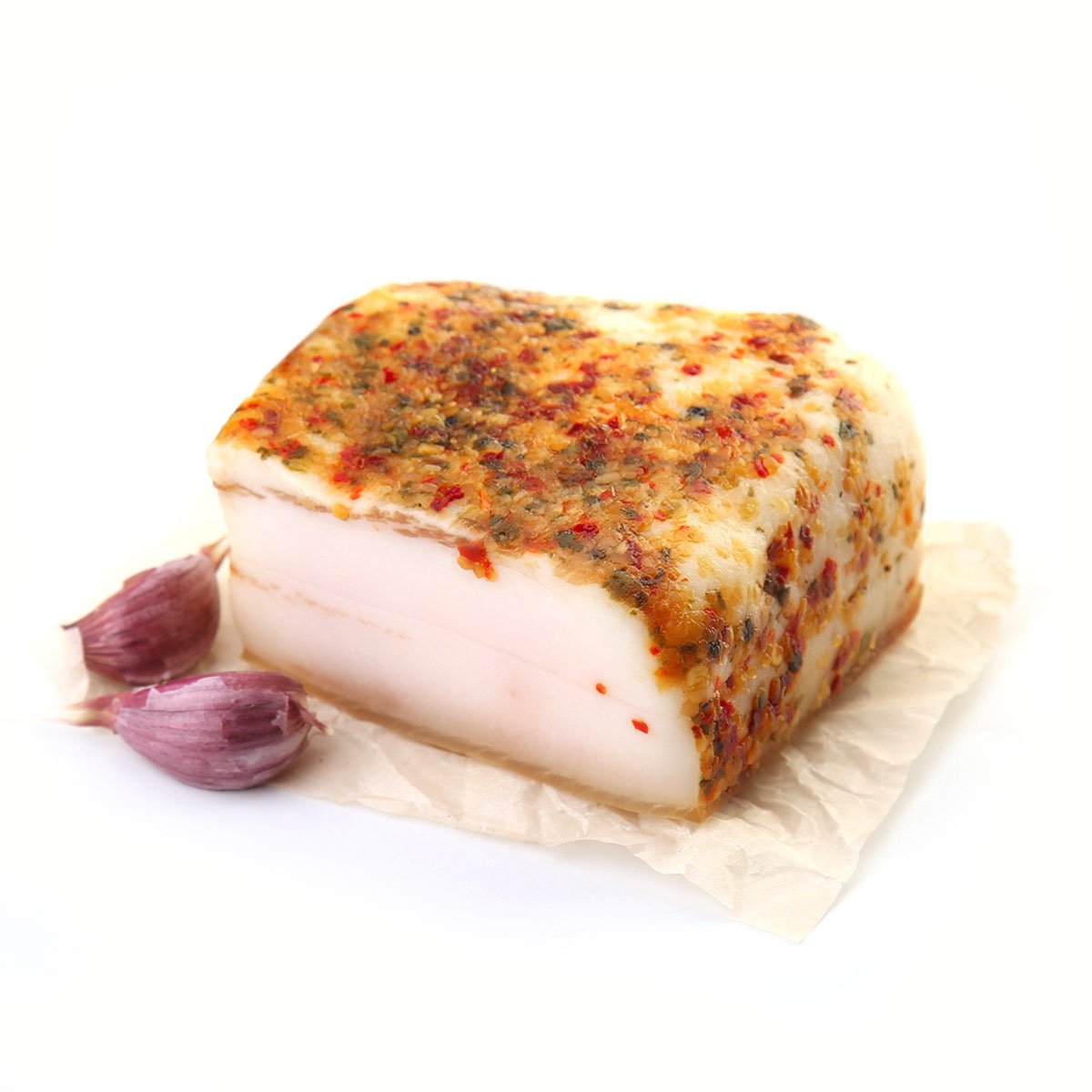 Шпик свиной, соль, чеснок, перец красный, перец зеленый.