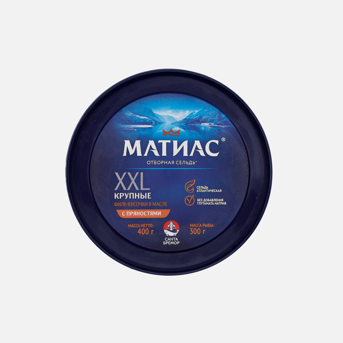 Сельдь Матиас ф/к с/с XXL отборные с пряностями в масле 400г