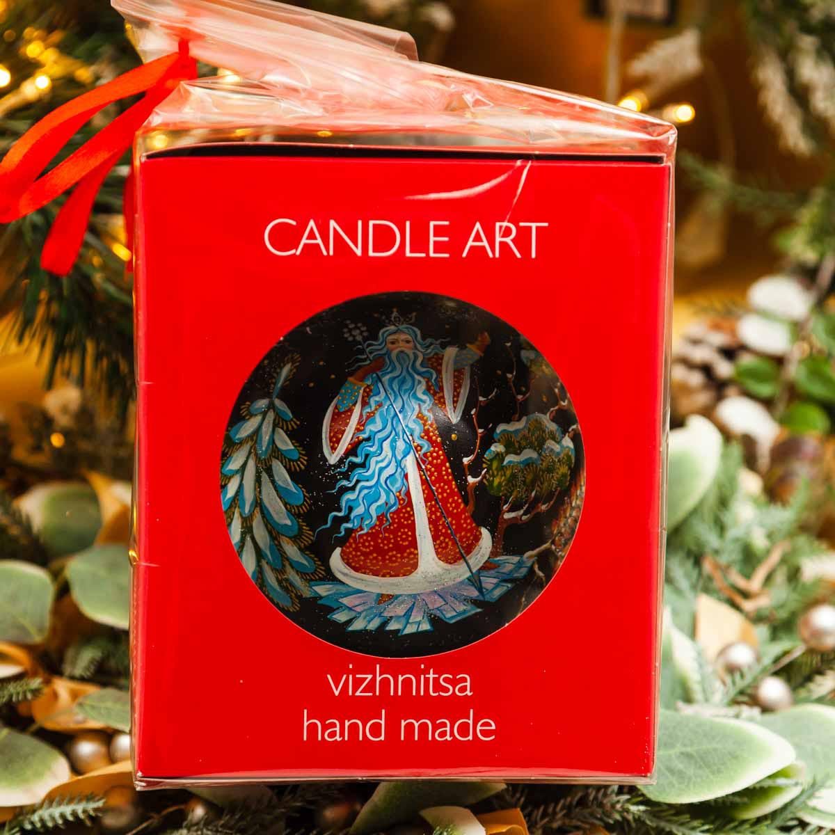 Шарик Эвис с подвесом ручн роспись Дед Мороз и терем стекло 12*12см