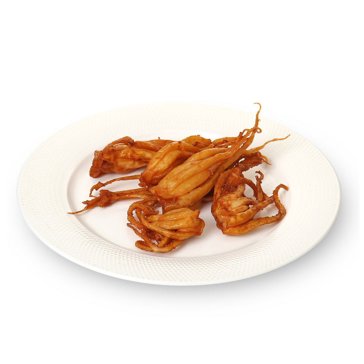 Щупальца кальмара с/м, сахар-песок, соль пищевая, масло подсолнечное, томаты суш, перец красный.