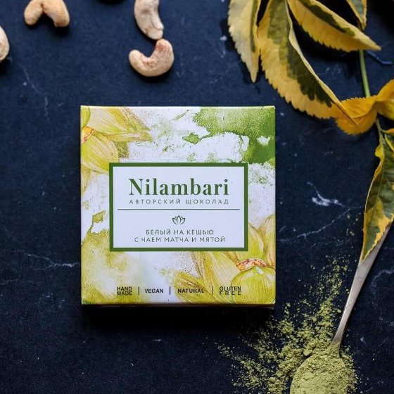 Шоколад Ниламбари чай матча/мята на кешью белый к/к 65г