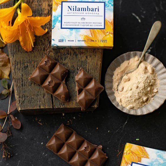 Шоколад Ниламбари с финиковой пудр на овсяном молоке молочный к/к 65г
