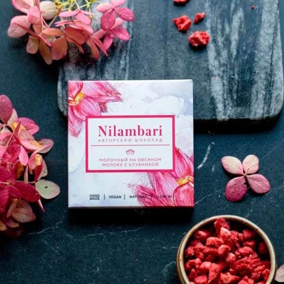Шоколад Ниламбари с клубникой на овсяном молоке молочный к/к 65г