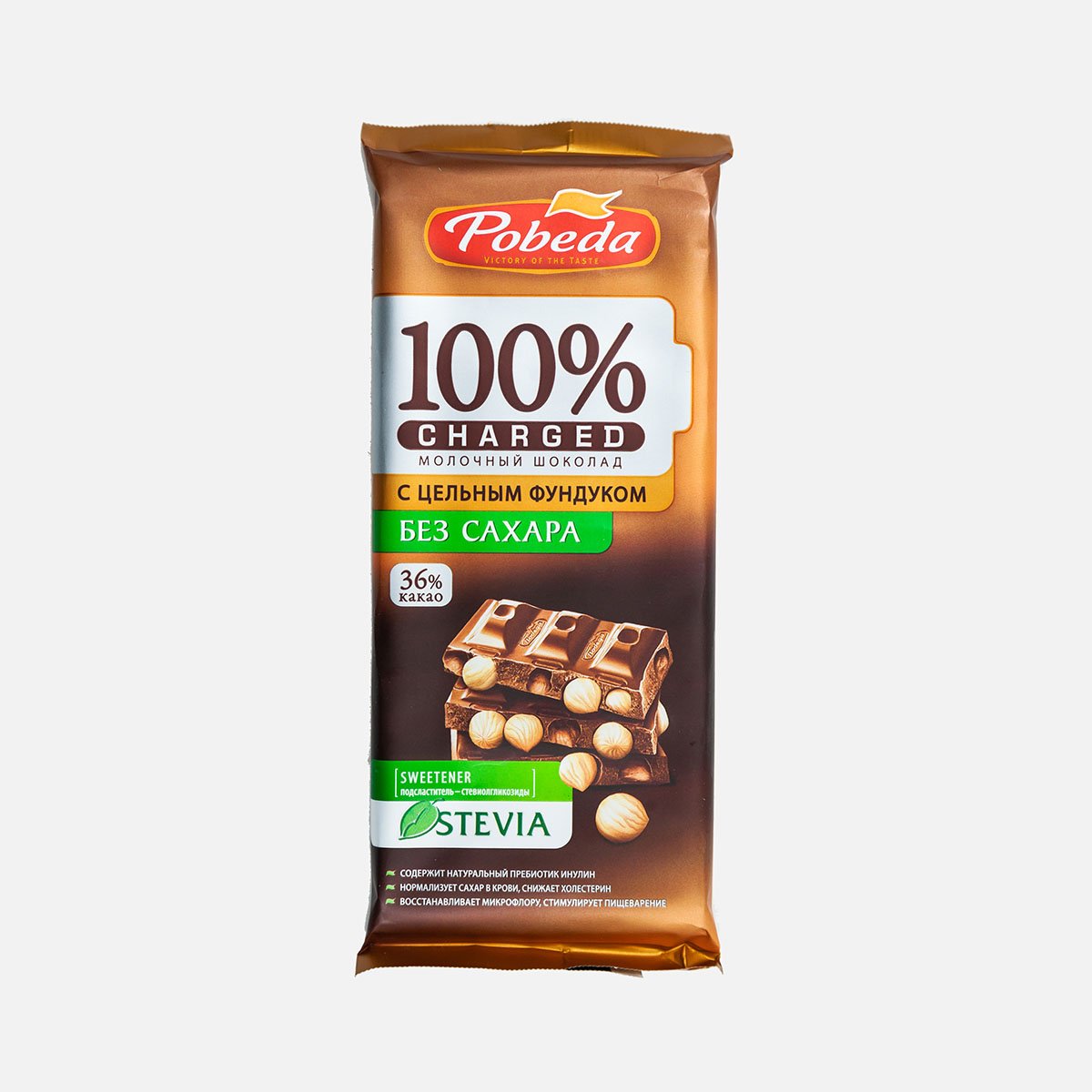 Шоколад Победа Чаржед молочный с цельным фундуком б/сах 90г