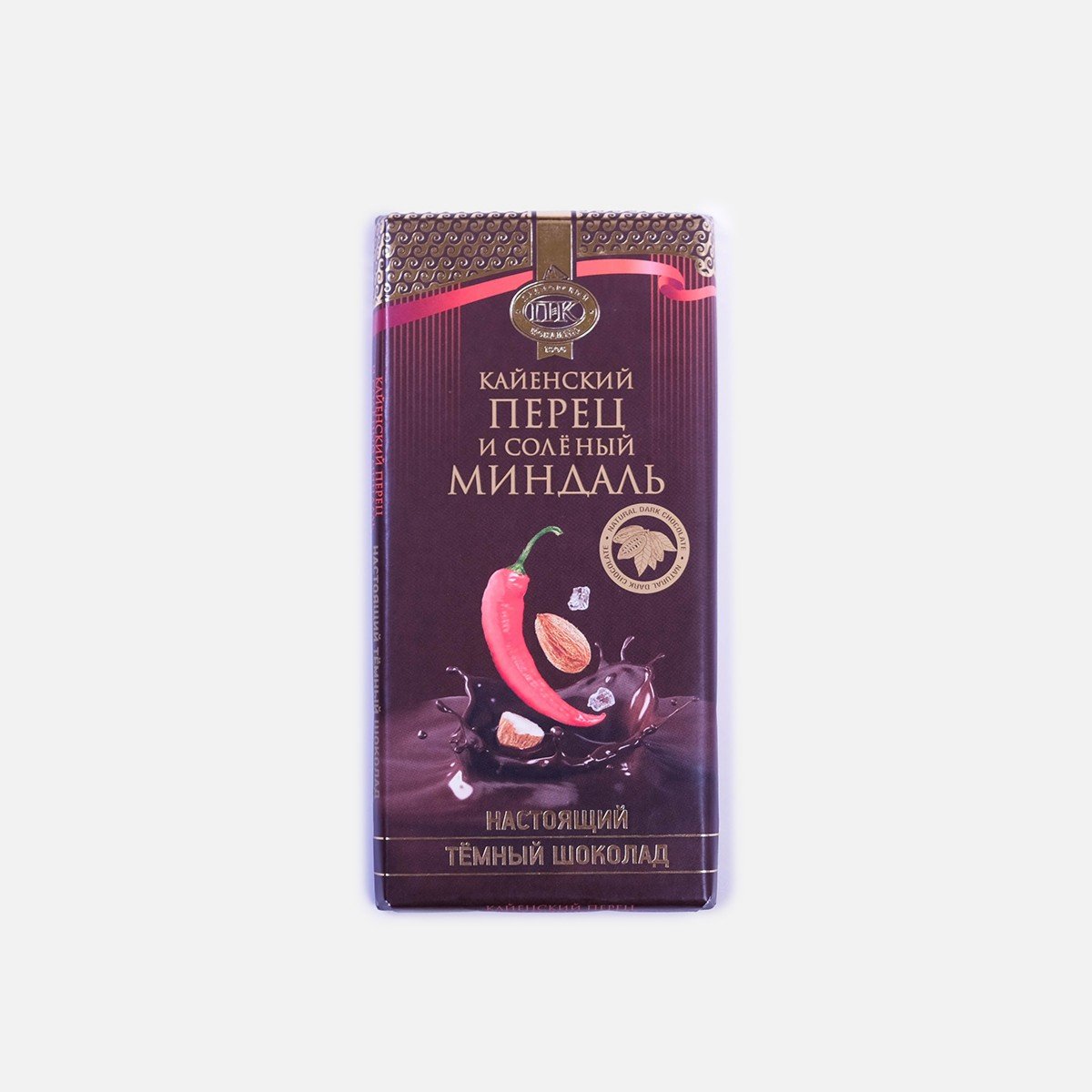 Шоколад Приморский Кондитер темный с кайен перцем/солен миндалем 100г