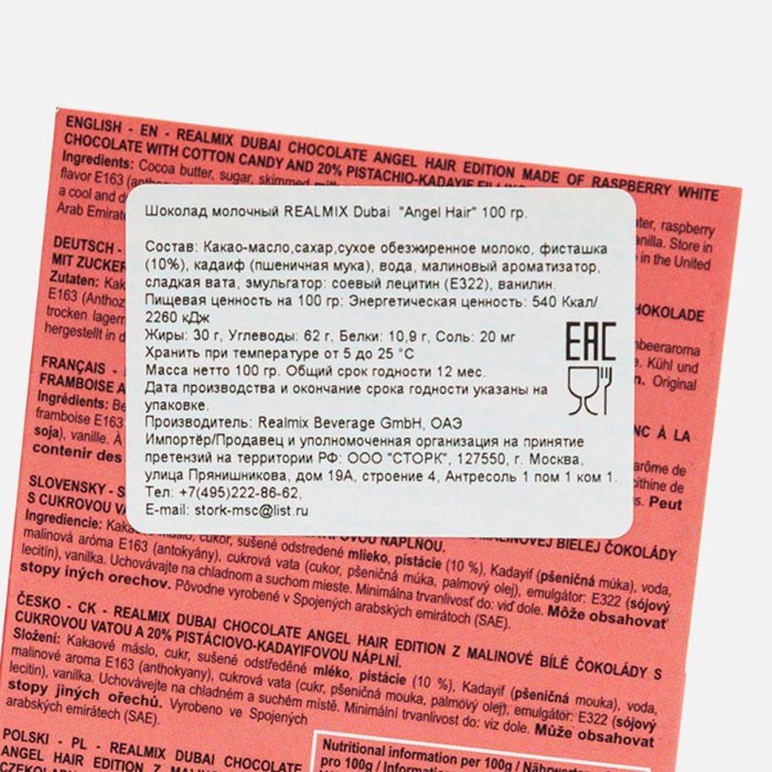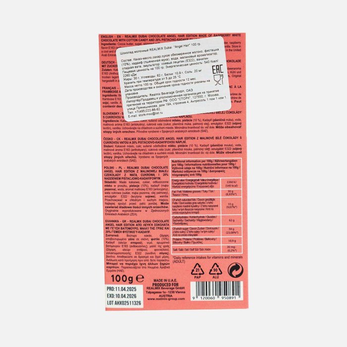 Шоколад Риалмикс Дубай Энжел Хэа 100г