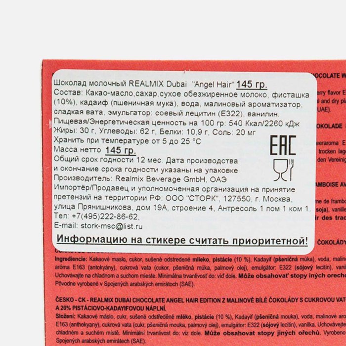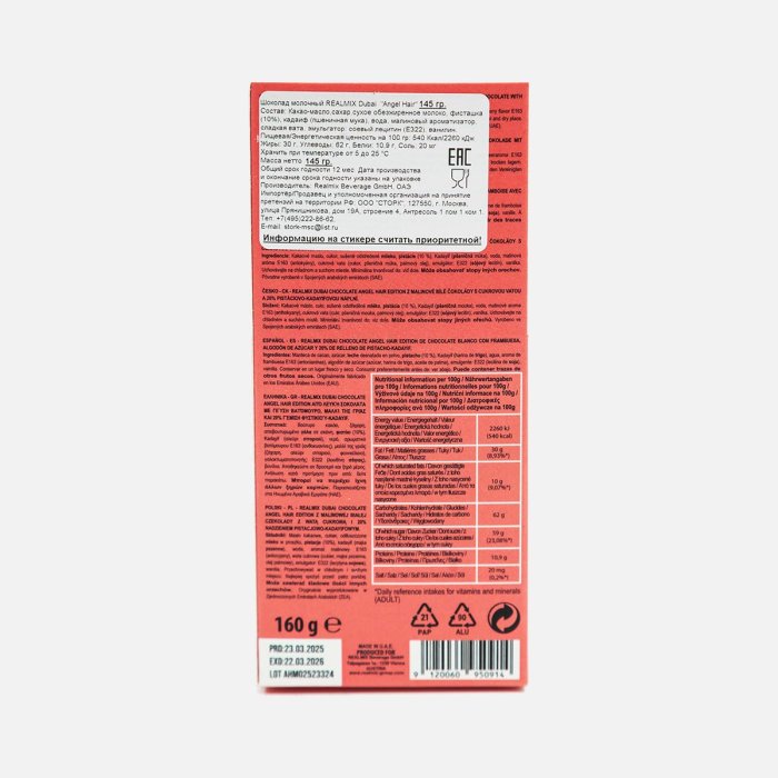 Шоколад Риалмикс Дубай Энжел Хэа 160г
