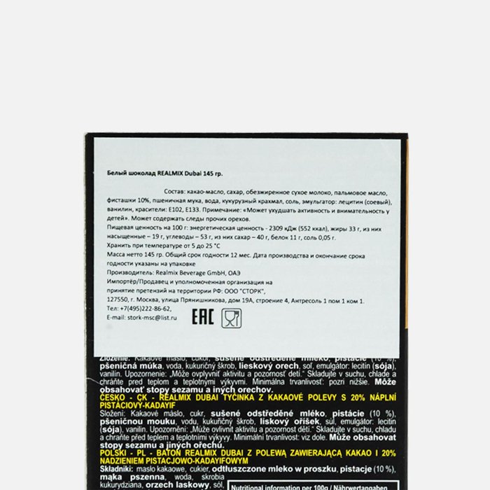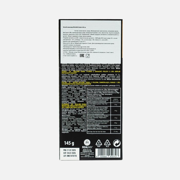 Шоколад Риалмикс Дубай Пистачио Кунафа Вайт 145г
