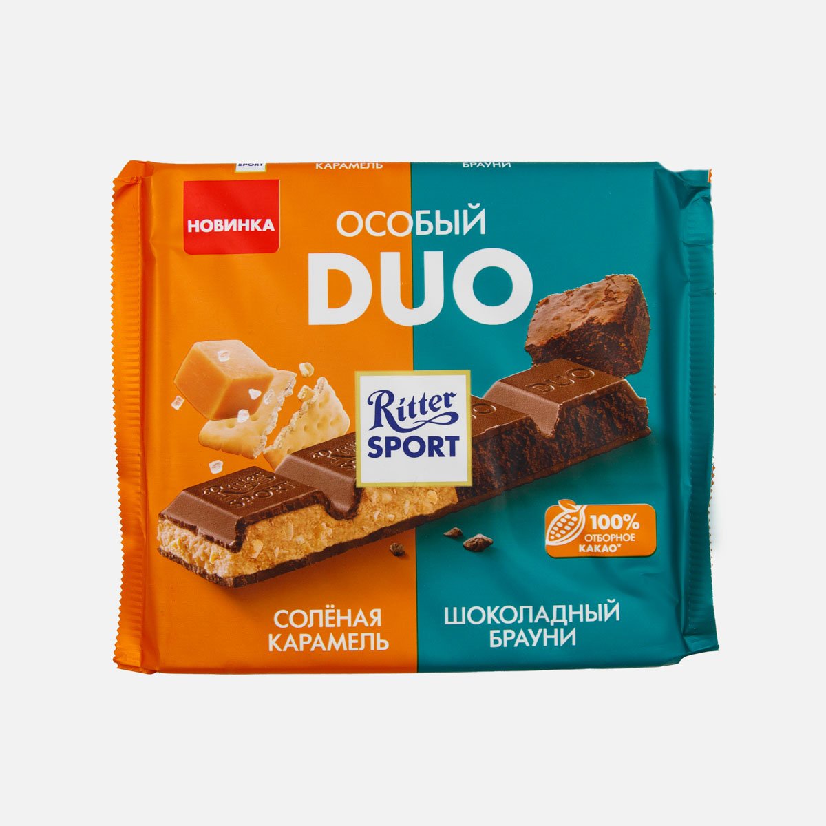 Шоколад Риттер Спорт Дуо Соленая карамель/шоколад брауни 218г