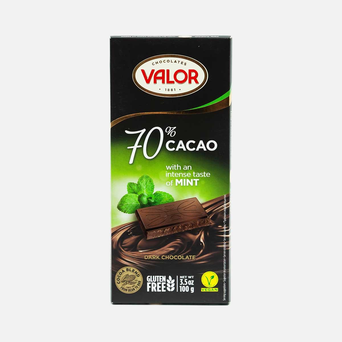 Шоколад Валор горький 70% с мятой 100г
