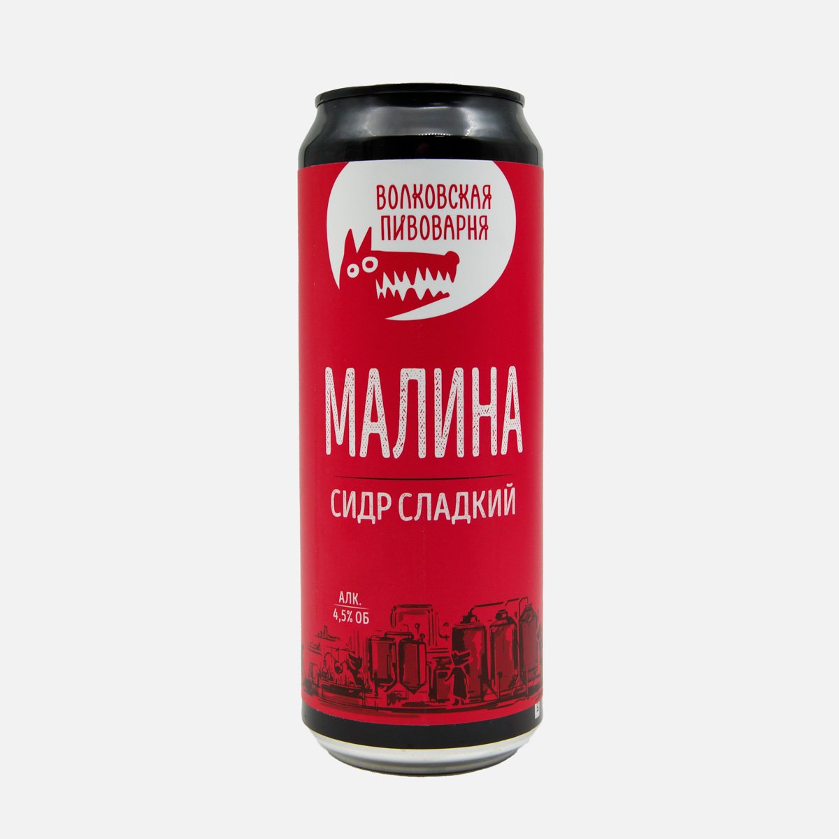 Сидр Волковская пивоварня Малина фрук фильр паст газ 4.5% ж/б 0,45л