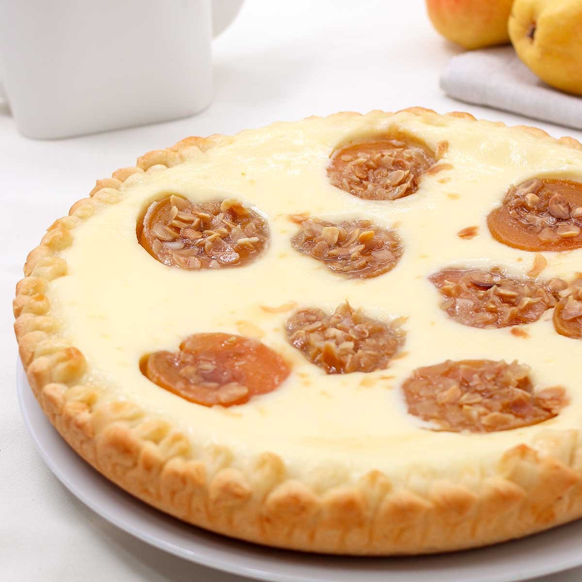 Сметана, абрикос консервированный, мука пшеничная в/с, яйцо куриное, маргарин, сахар, молоко, масло подсолнечное, лепестки арахисовые, смесь кремико, дрожжи прессованые хлебопекарные, соль поваренная пищевая, ванилин кристаллический.