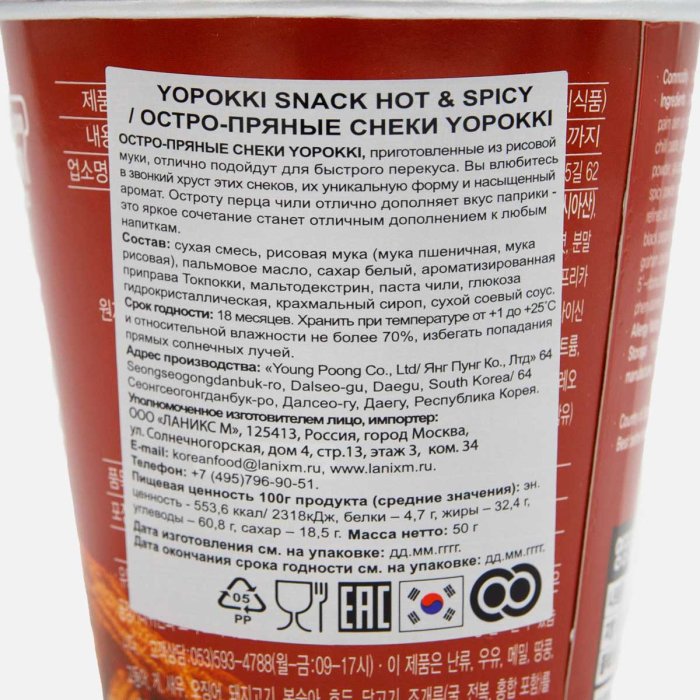 Снэк Йопокки остро-пряный вкус 50г