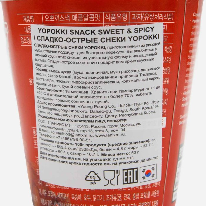 Снэк Йопокки остро-сладкий вкус 50г