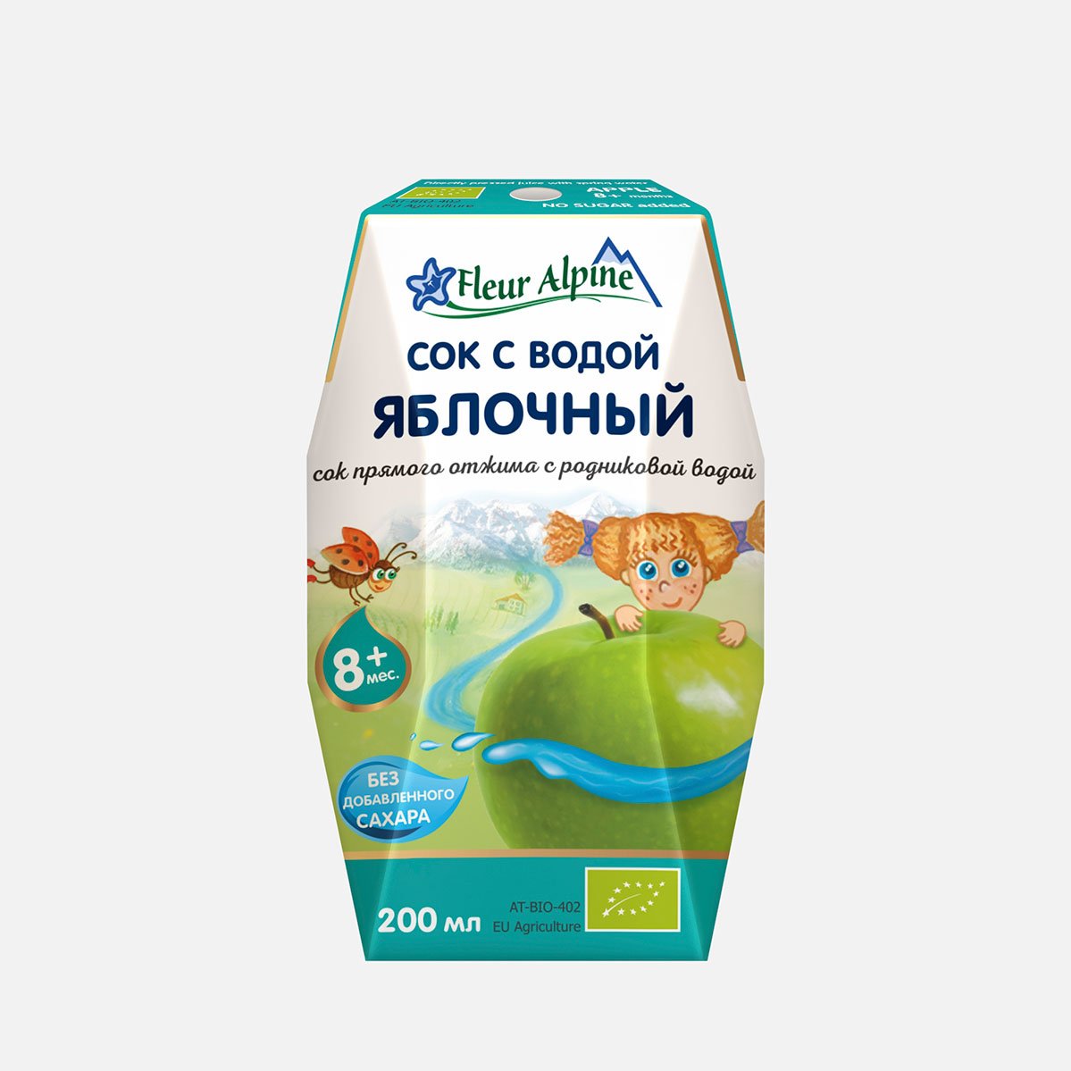 Сок Флер Альпин Яблочный прям отжим с родниковой водой с 8мес 200мл