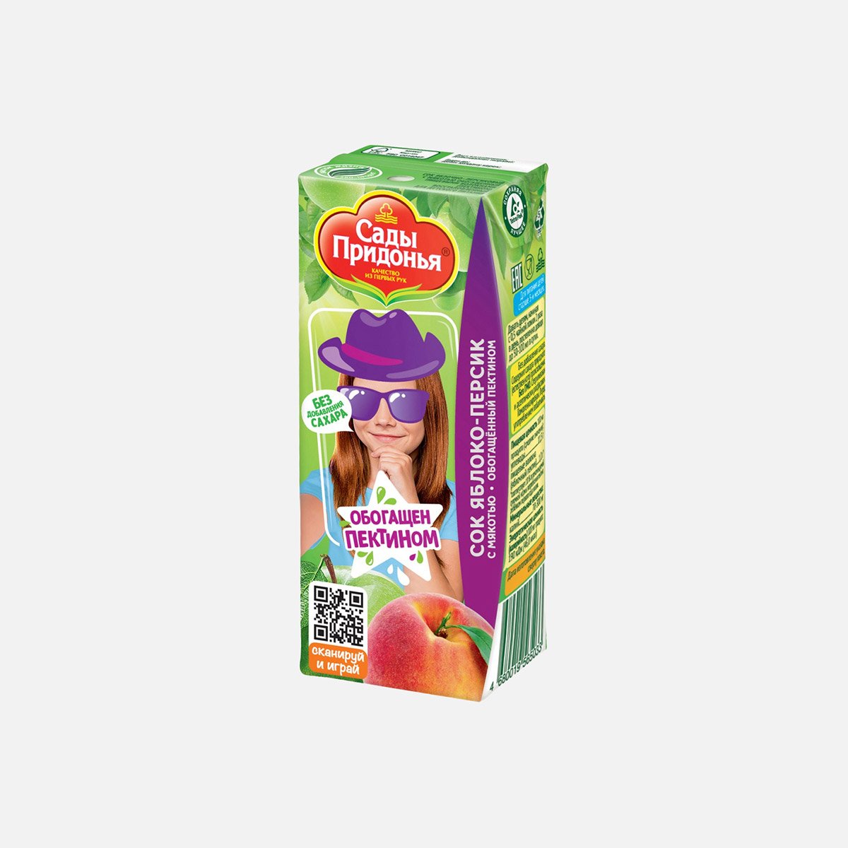 Сок Сады Придонья Яблоко/Персик с мякотью б/сахара т/п 0,2л
