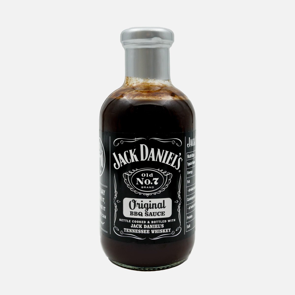 Тростниковый сахар, яблочный уксус, томатная паста, вода, патока, концентрат тамаринда, винный уксус, подкопченный орех хикори, соль, желтая горчица (дистилированный винный уксус, вода, семена горчицы, соль, паприка, специи, куркума), модифицированный кукурузный крахмал, концентрированный ананасовый сок, виски Jack Daniels (0,5%), сушенный чеснок, сушенный лук, специи, пектин, натуральный яблочный краситель.