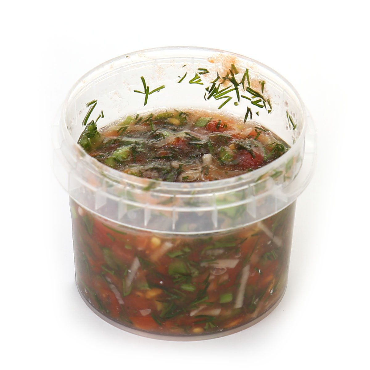 Пикантный соус из спелых томатов, зеленого лука, укропа и чеснока. Придаст любому блюду неповторимый аромат и изысканный вкус.