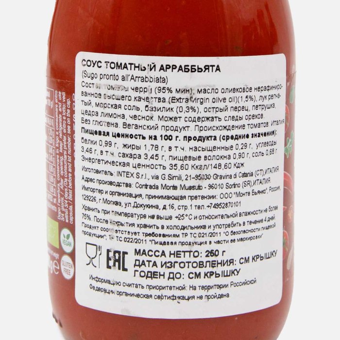 Соус Конвивиа из томатов черри Арраббьята Био ст/б 250г