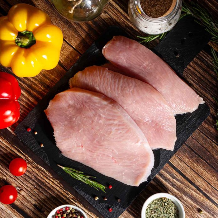 Порционные ломтики из белого мяса индейки, которые легко приготовить на сковороде, гриле или в духовке. Идеальный выбор для приверженцев правильного и здорового питания.