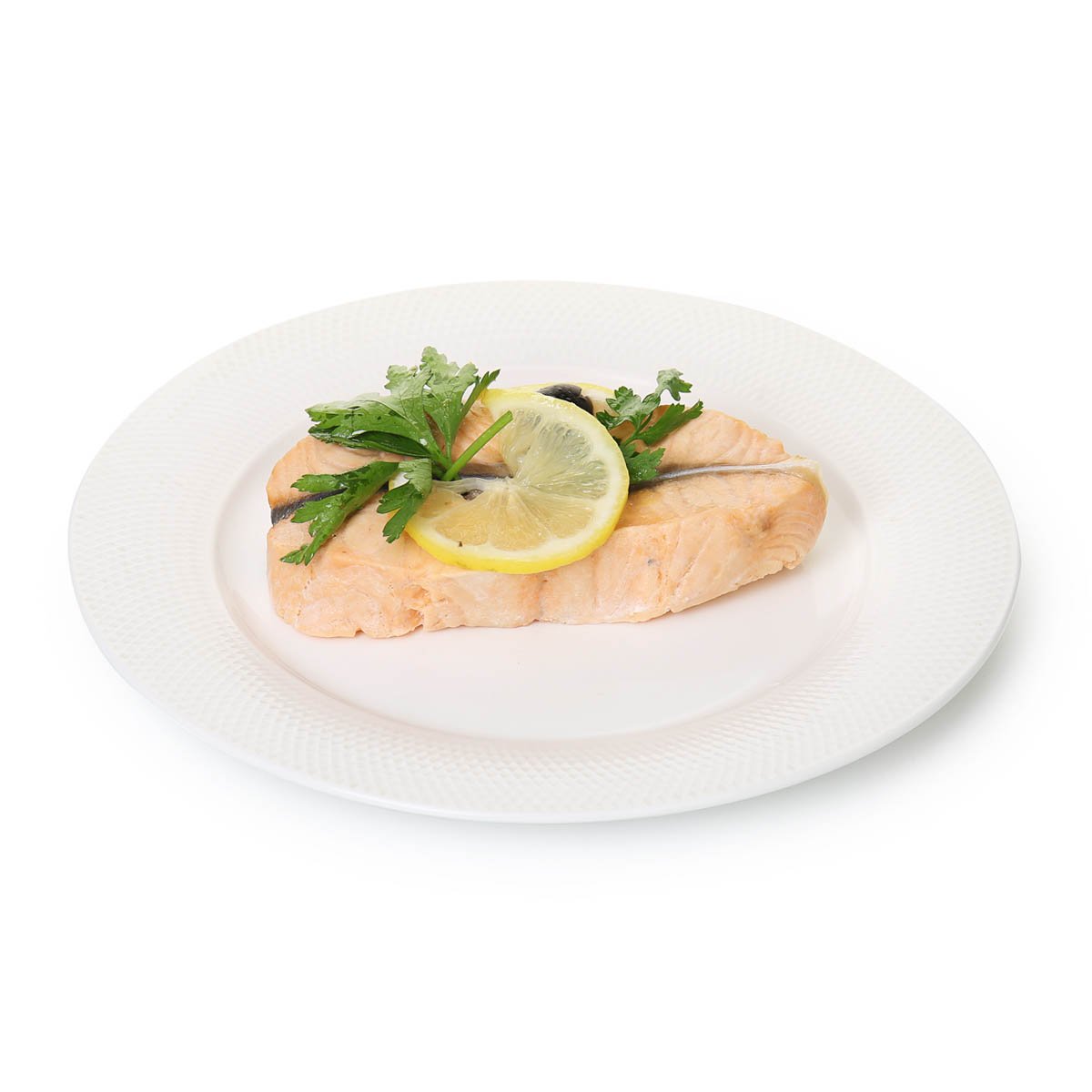 Семга с/м, лимон свежий, маслины консервированные, зелень петрушки, масло подсолнечное, соль поваренная пищевая.