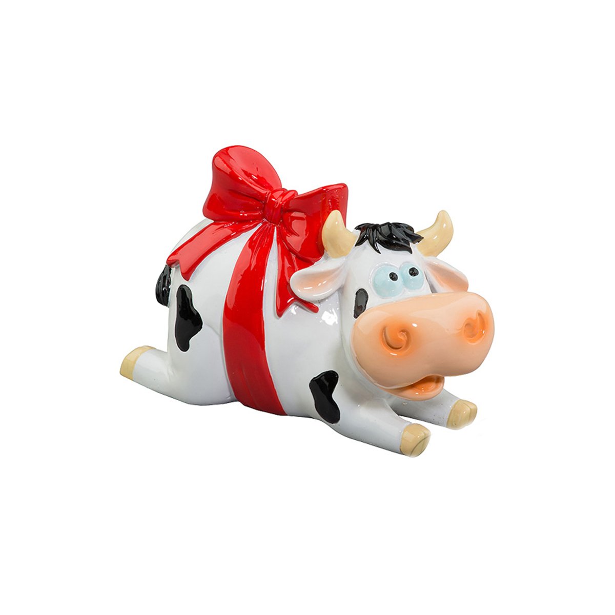 Сувенир Копилка Корова подарок с красным бантом 6х13х8,5см полимер