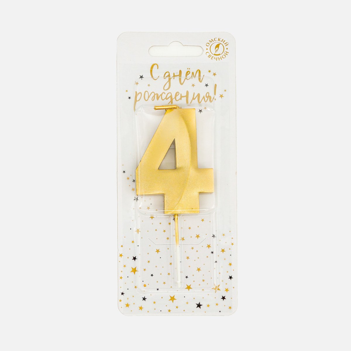 Свеча Омский СЗ тортовая на шпажке 4 Золотые витые парафин 4х1,1х9,5