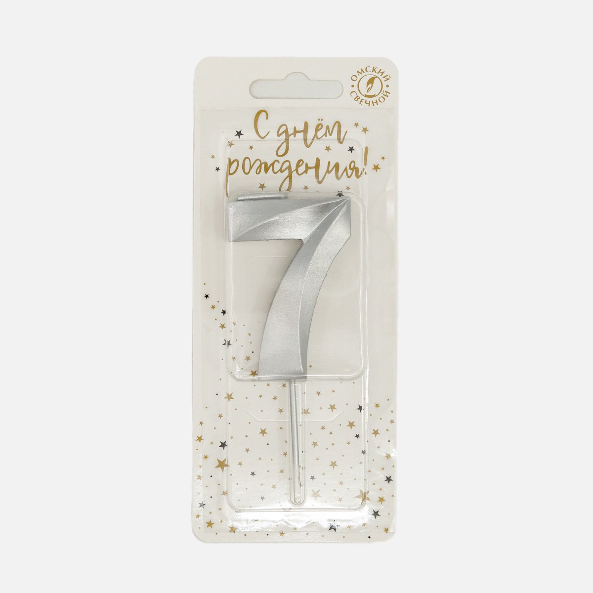 Свеча Омский СЗ тортовая на шпажке 7 Витые серебро парафин 4х1,1х9,5