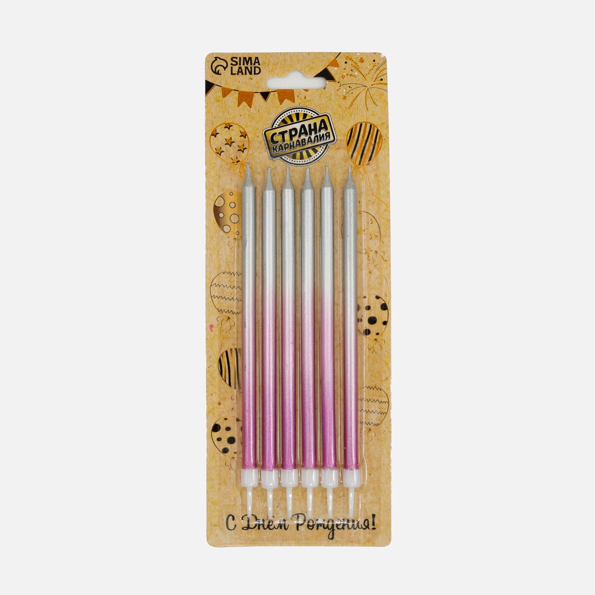 Свечи д/торта С Днем Рождения фиоле /роз/сереб высокие 6шт 5060040