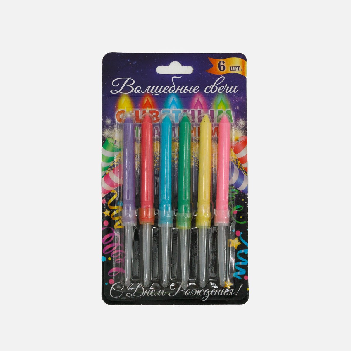 Свечи с цветным пламенем С Днем Рождения 7,5х13см 6шт 2452117