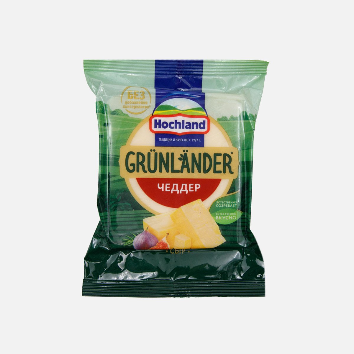 Сыр Хохланд Грюнландер Чеддер п/тверд 50% пл/уп 180г