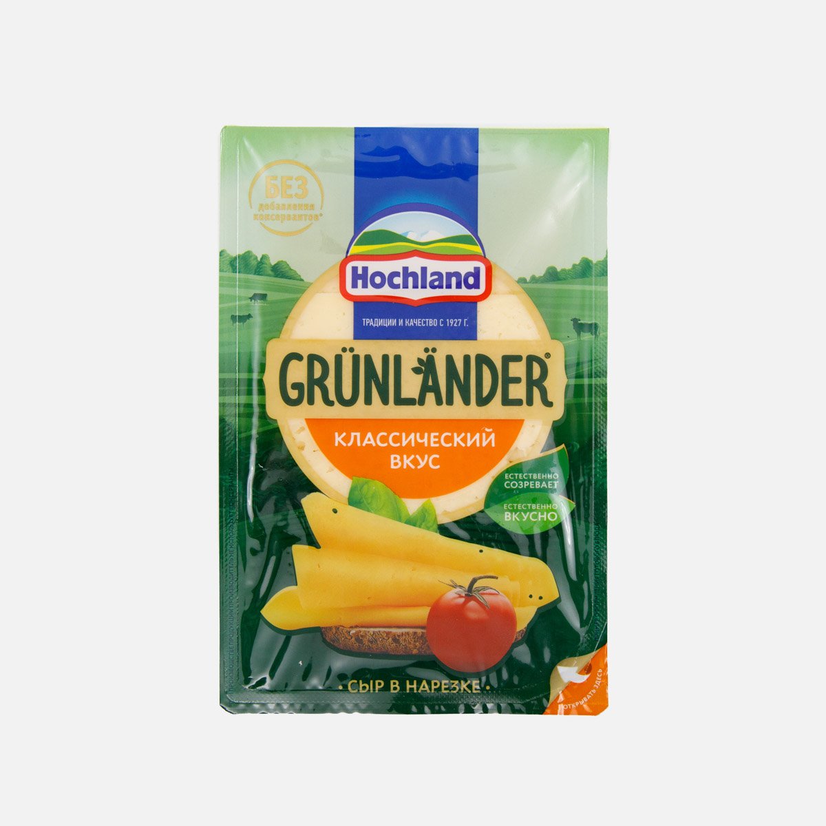 Сыр Хохланд Грюнландер классический п/тверд нарезка 50% пл/уп 130г