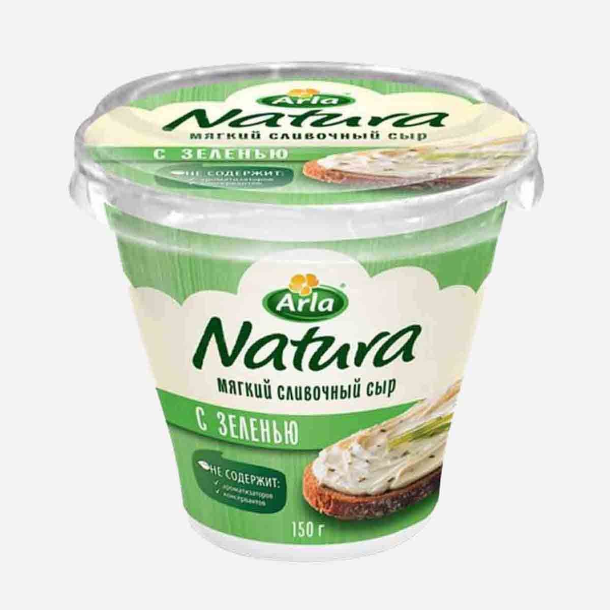 Сыр Натура сливочный с зеленью мягкий 55% пл/ст 150г