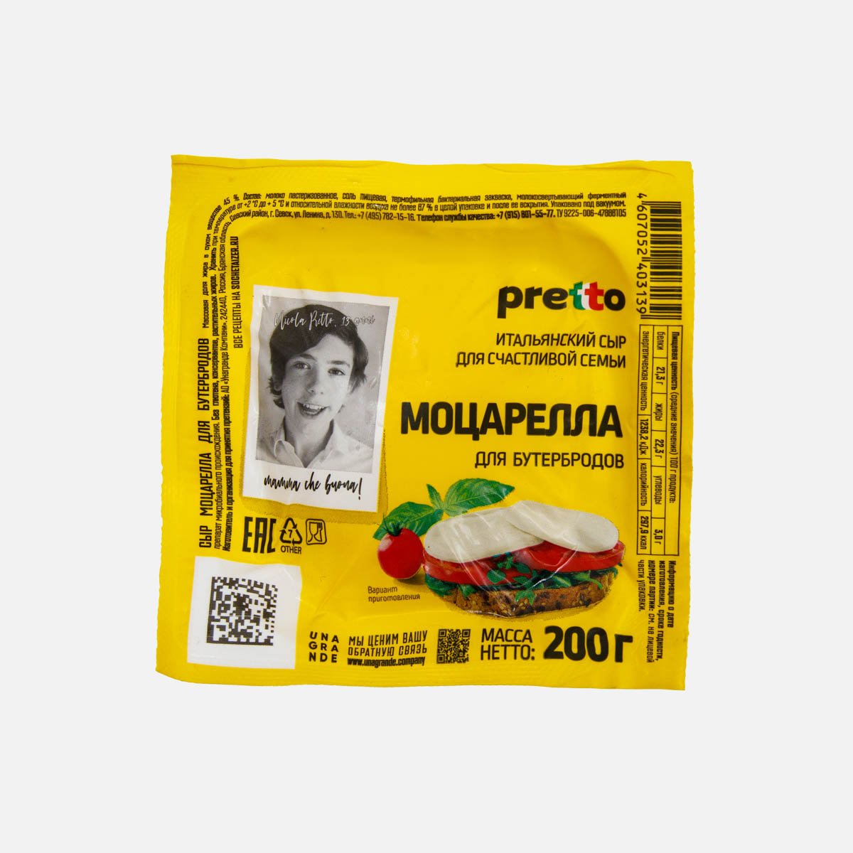 Сыр Претто Моцарелла д/бутербродов 45% пл/уп 200г
