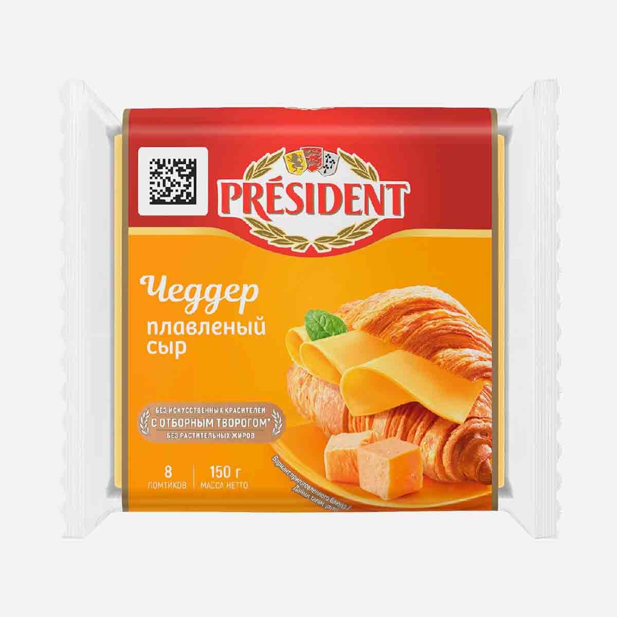 Сыр Президент плавл Чеддер нарезка 40% пл/уп 150г