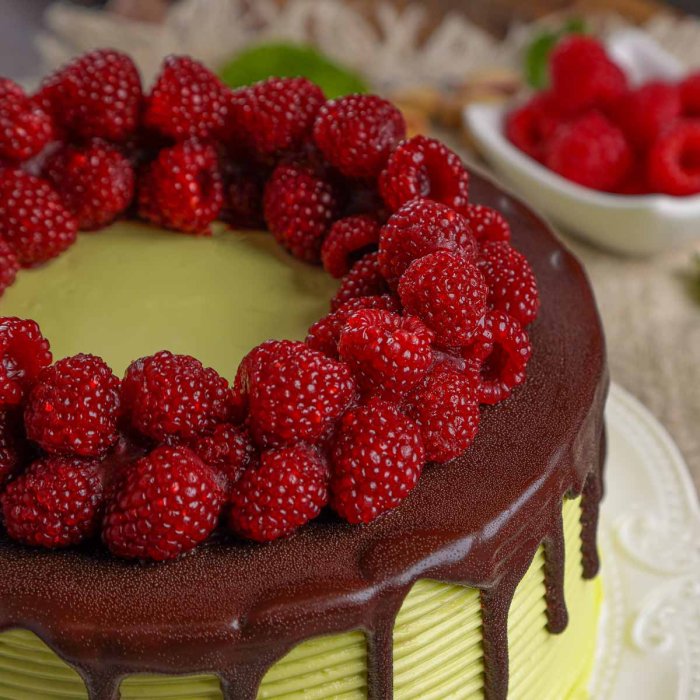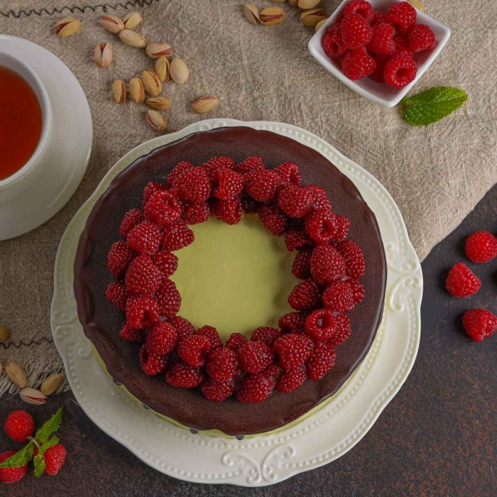 Сыр плавленый, сыр творожный, малина с/м, орех фисташка, мука пшеничная в/с, крем покрытие фисташка, паста фисташковая, молоко сгущенное, сахар-песок, сливки растительные, пудра сахарная, крем покрытие какао, яйцо куриное, желатин, крахмал, краситель пищевой