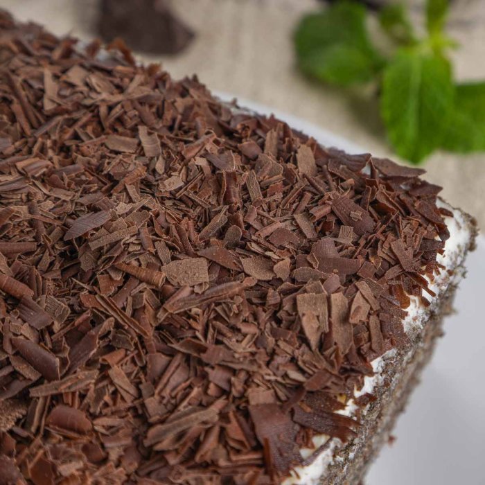 Мука пшеничная в/с, молоко цельное, сахар-песок, сметана, сода пищевая, уксус, черемуха молотая, шоколадная глазурь, яйцо куриное.