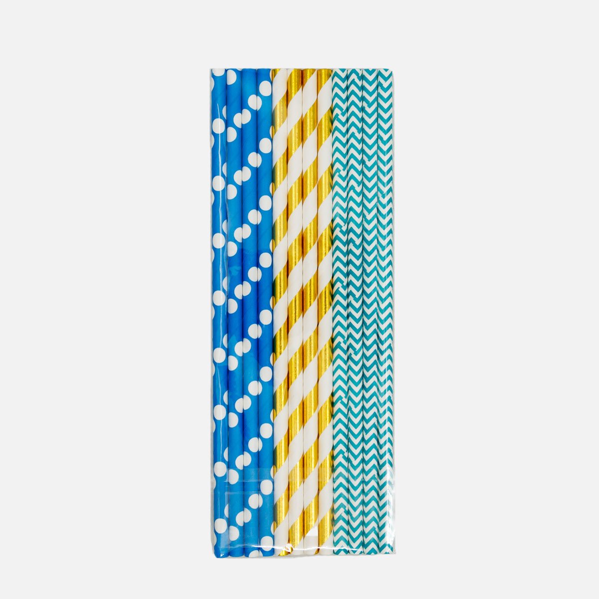 Трубочки Фиоленто для/напитВеселая вечеринка голуб/зол 19,5см бум 12шт